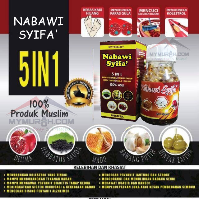 Kapsul Nabawi Syifa adalah formulasi dari bahan2 yang digunakan sejak zaman Rasulullah S.A.W untuk penjagaan kesihatan diri.