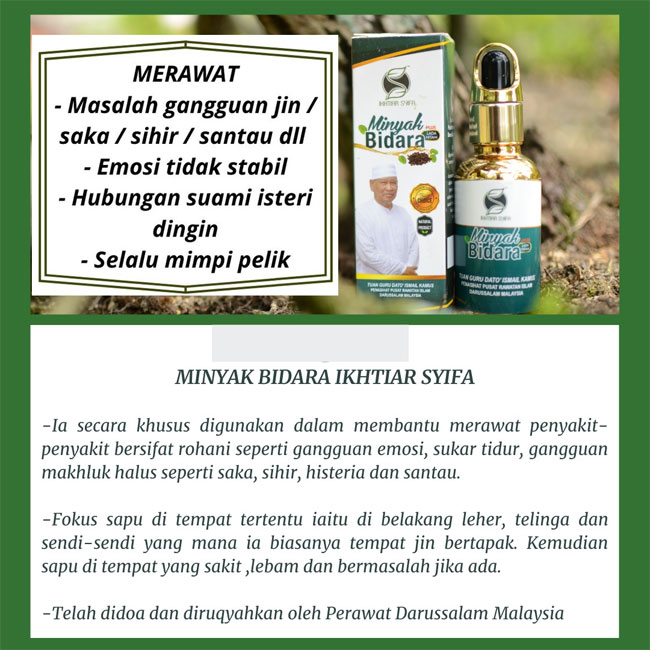 Bidara Ikhtiar Syifa berasaskan bidara yg diruqyah oleh kumpulan perawat Darussalam Malaysia yg diasaskan Almarhum TG Dato' Ismail Kamus.
