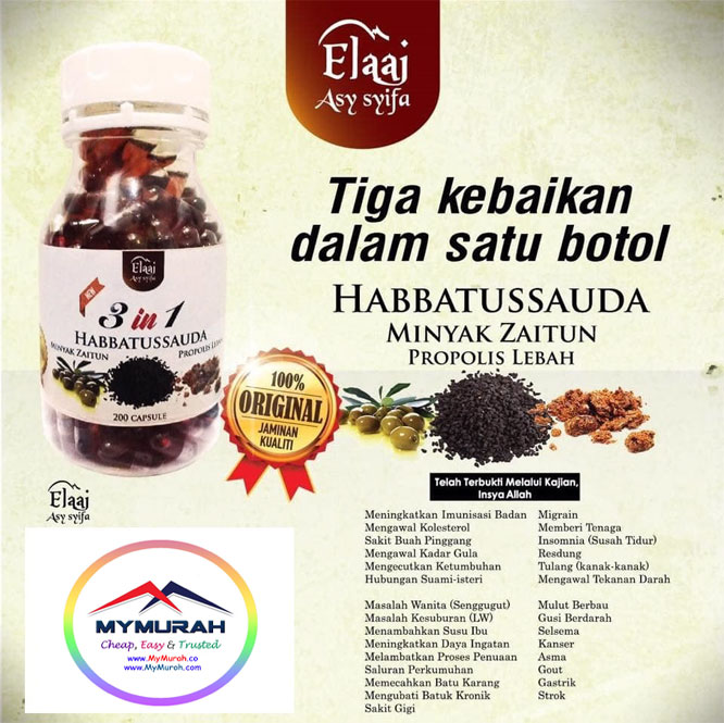 Gabungan 3 makanan sunnah iaitu Habbatus sauda, minyak zaitun & propolis ????.